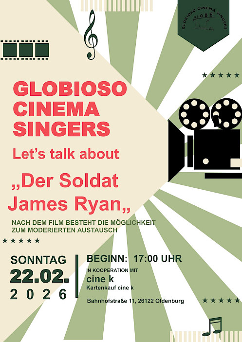 Eine Gesprächsrunde wird dafür im Cine K nach der Vorstellung geschaffen und in der Moderation geleitet von Lea Decker, Sopranistin und Chorrätin bei den Globiosos und Brigitte Möllers, 1. Vorsitzende.